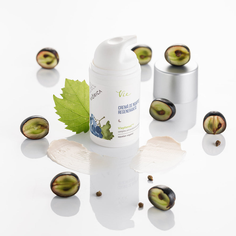 Crema regenerantă ajută celulele să se reînnoiască și să-și suplinească rezervele de substanțe vitale care s-au epuizat peste zi.