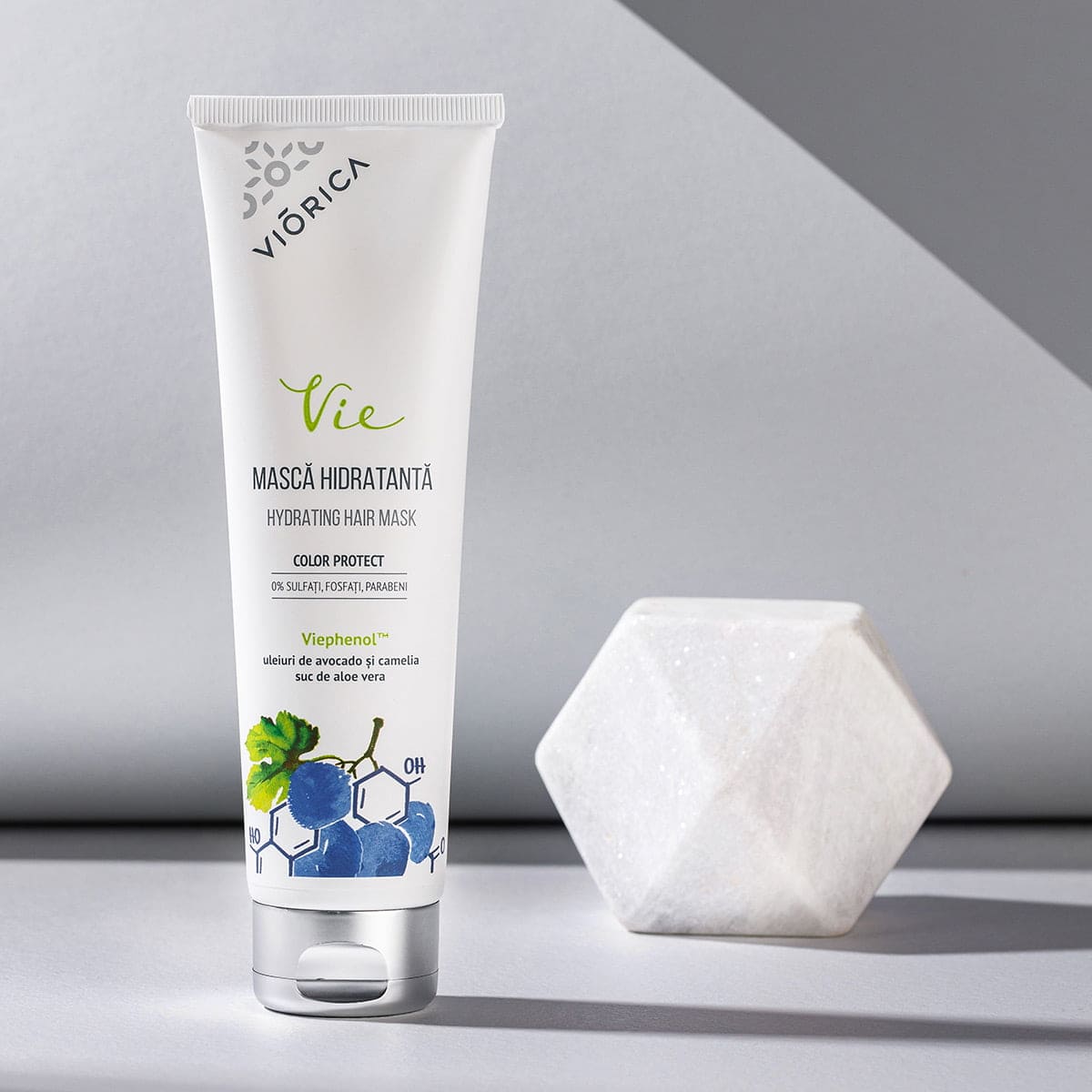 Datorită combinației ideale dintre complexul antioxidant patentat Viephenol™ din semințe de struguri și cele 13 ingrediente vegetale, masca încetinește procesul de îmbătrânire a părului, oferindu-i hidratare, nutriție și rezistență pe întreaga lungime. Firele de păr devin mai netede, mai elastice și mai ușor de aranjat. Formula are un efect hidratant intens datorită uleiului de avocado și sucului de aloe vera.